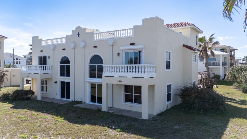 Unique 3-story Spanish Mediterranean 3 bedroom/ 2.5 bath townhome offering expansive panoramic ocean views from the balcony, over 1000 sq ft rooftop deck, living room, and both primary suites. Conveniently located directly across the street from the beach, this property provides easy access to the quiet, uncrowded shores of Ormond Beach-perfect for morning walks, sunrise and sunset views, and enjoying the relaxed coastal lifestyle.